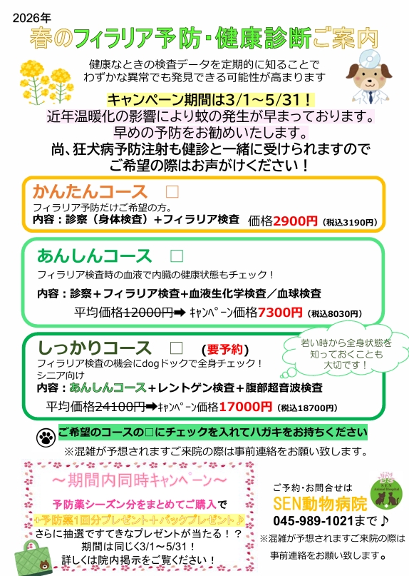 3月からわんちゃんの春健診スタートします!